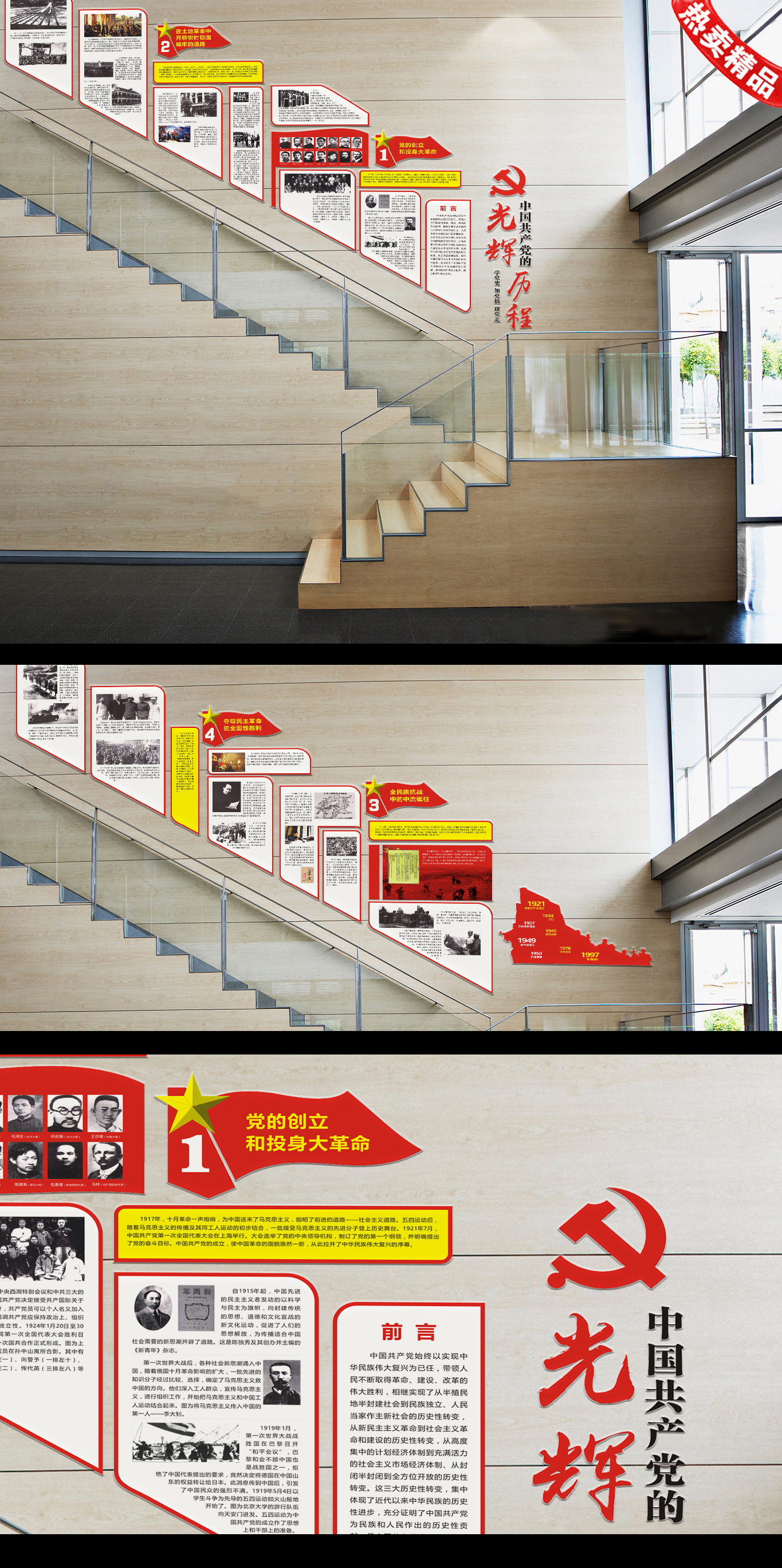 光辉历程党建楼梯文化墙